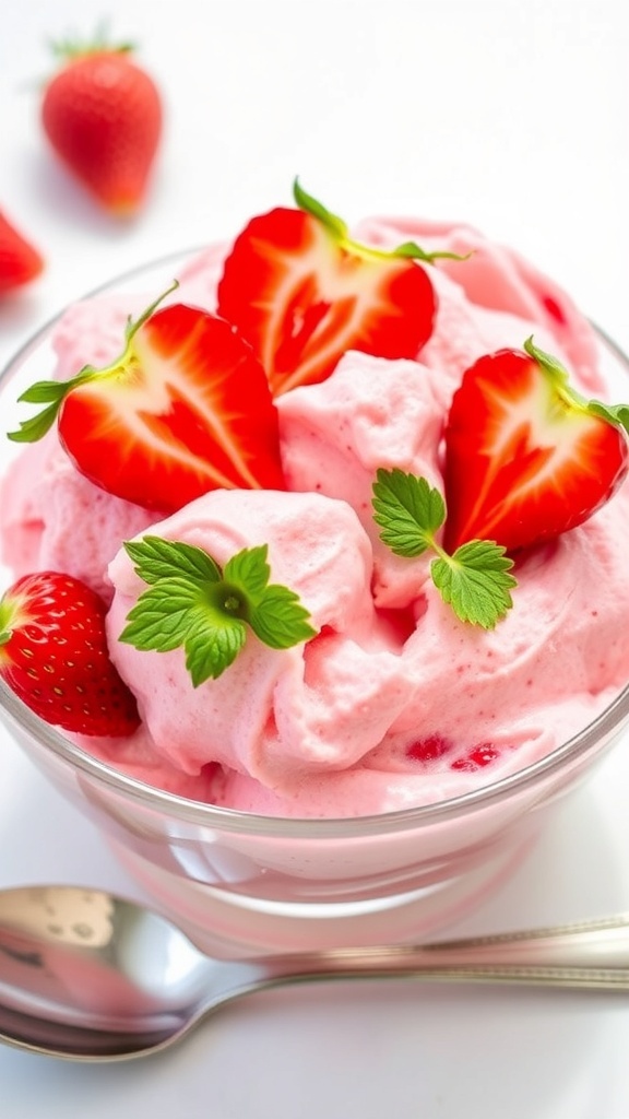 - Serve: Scoop the frozen yogurt into bowls and garnish with fresh strawberries if desired. Enjoy immediately for the best texture.